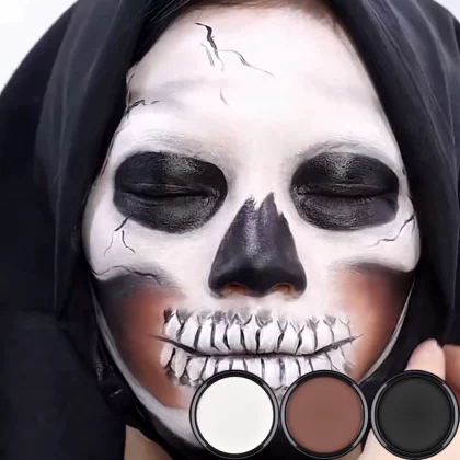 | nameOriginal | Black and white foundation concealer, black coffee color powder, Halloween special effect skull makeup, cos clown geisha makeup |