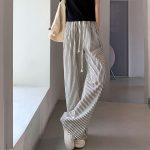 | nameOriginal | Black and White Striped Wide-leg Pants Women's Summer 2024 New Spring and Autumn High Waist Dumping Loose Straight Slimming Casual Pants |