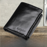 Black Angel Factory Supply Large Capacity Casual Top Layer Cowhide Men's Wallet Fashion 30% Fold Leather Men's Bag in Stock