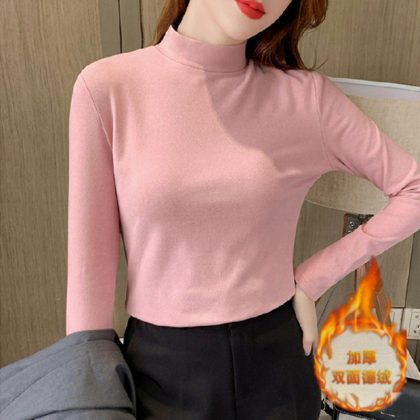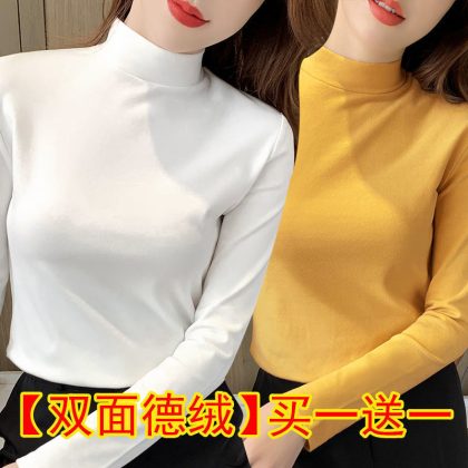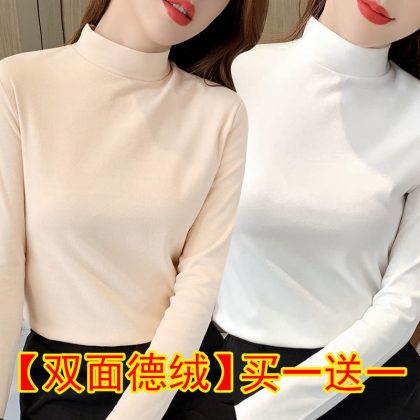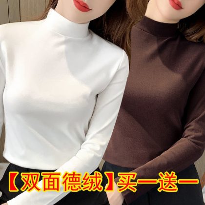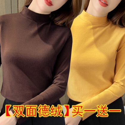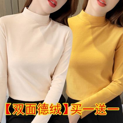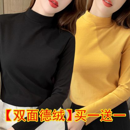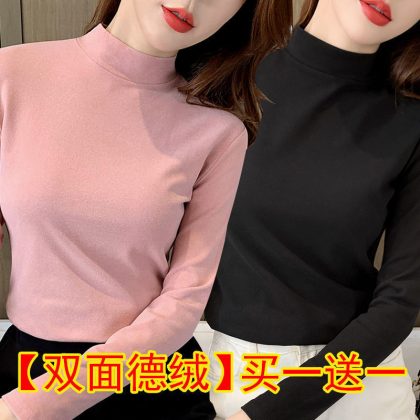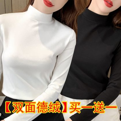 | nameOriginal | Black Base Shirt Women's Tight Two-piece Double-sided Velvet Half-high Collar Top Autumn Slim-fit All-match Long-sleeve |