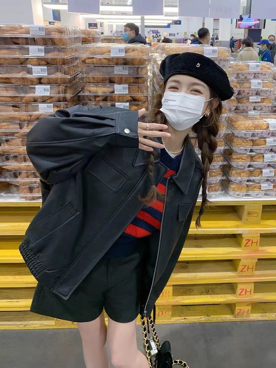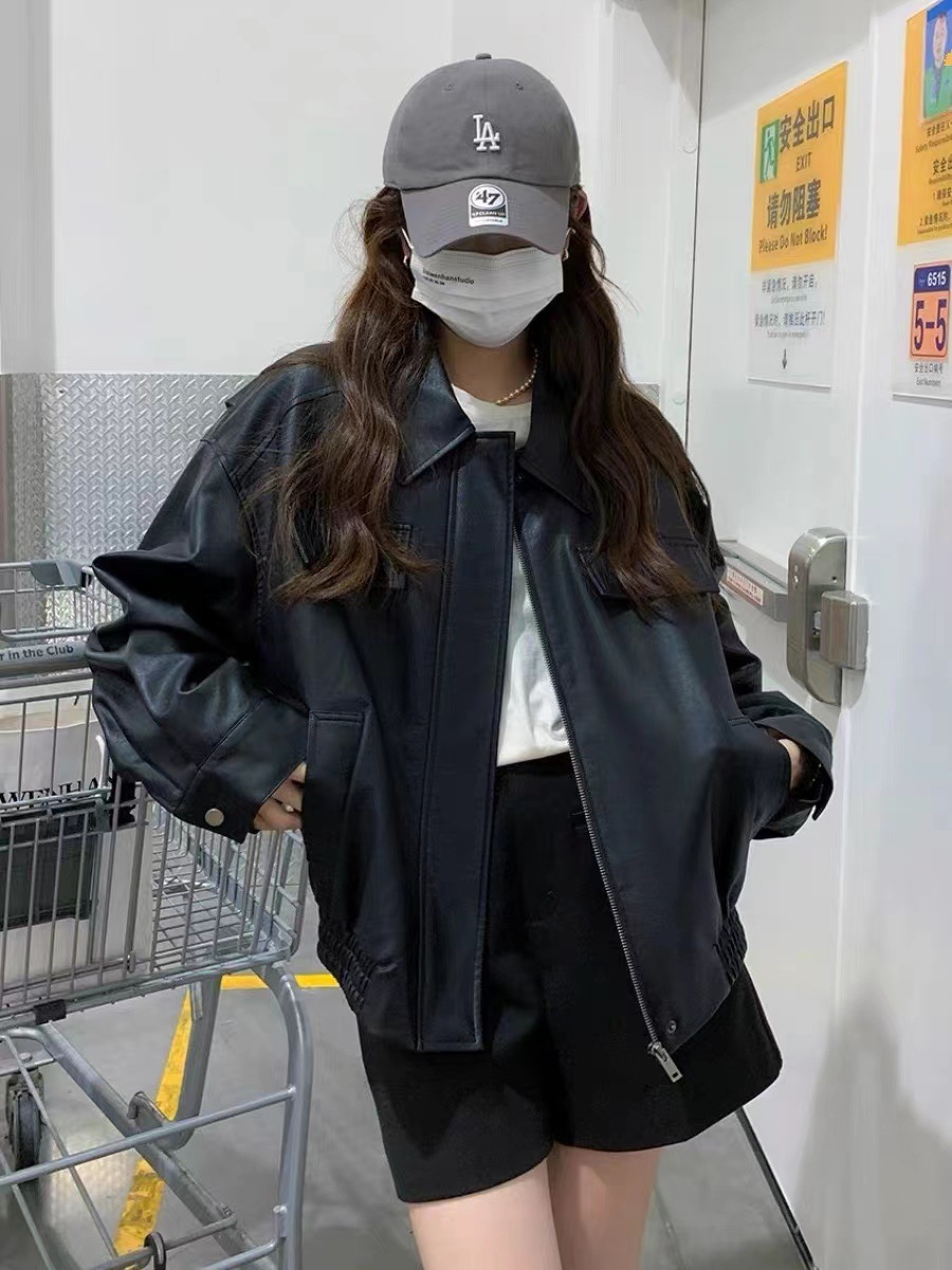 | nameOriginal | Black Baseball Suit PU Leather Jacket Women's Spring and Autumn American Retro Short Hong Kong Style Jacket for Small Couple |
