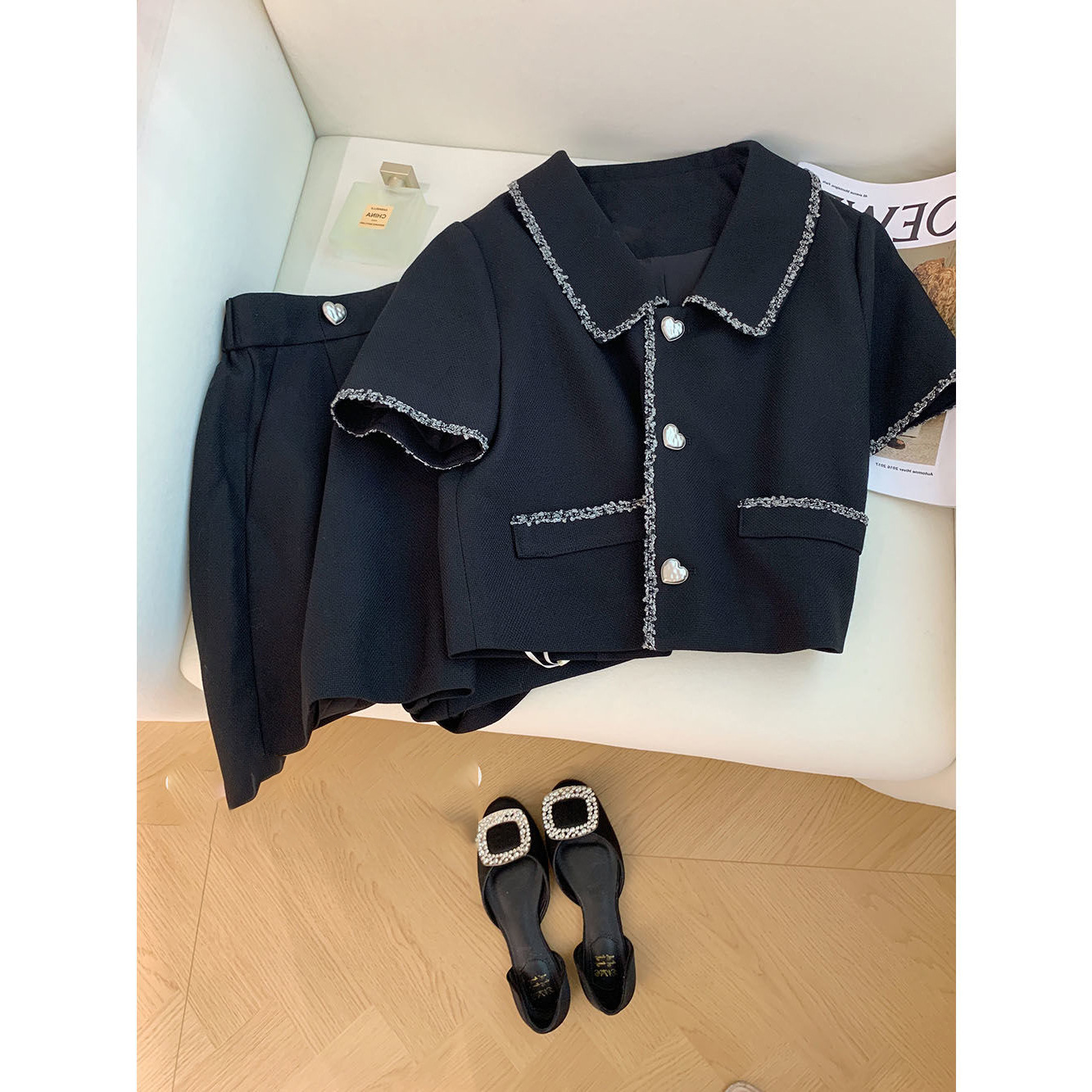 Black Chanel Style Short-sleeved Jacket Shorts suit Women's Summer 2024 New High-end Elegant Socialite Two-piece Set