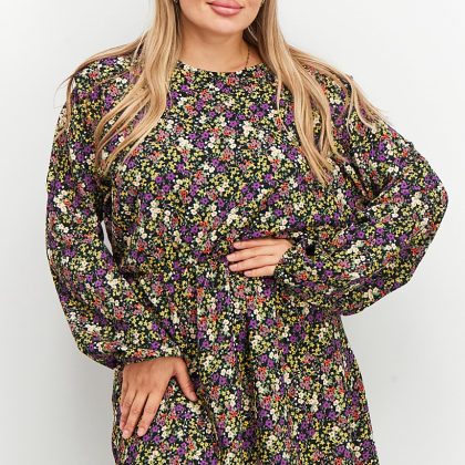 | sub_Categories | Women Clothing, Dresses, women all over print round neck long sleeve casual mini dress black combo |