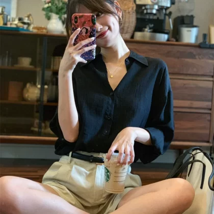 | nameOriginal | Black cotton and linen casual loose pants for women and sun protection shirt |