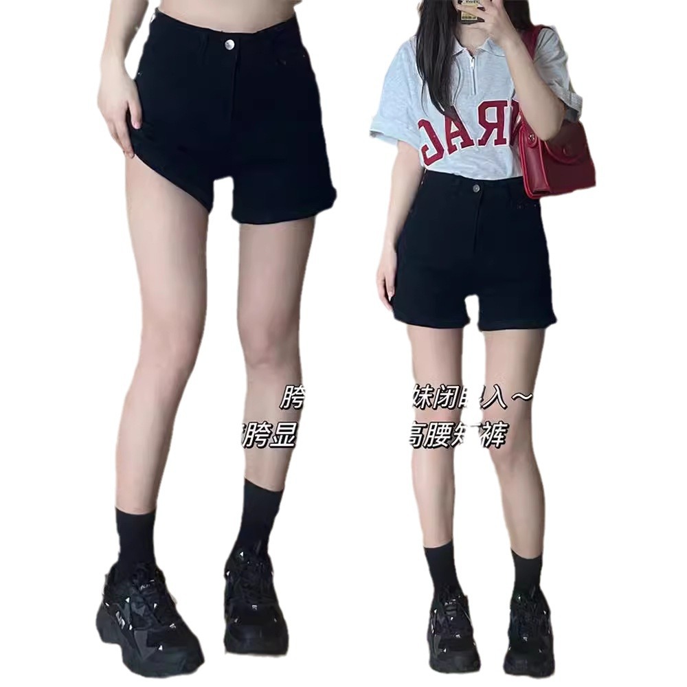 | nameOriginal | Black Denim Shorts Women's Summer Thin chubby girl High Waist Elastic Hip Covering Slim A- Shaper Hot Pants Suitable for Thick Hip and Thigh |