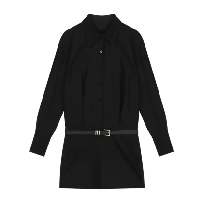 | nameOriginal | Black Dress Spring Belt Hip Cover Long Sleeve Shirt |