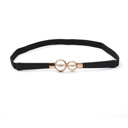 nameOriginal | Black Elastic Small Belt Fine Elastic Decorative Dress Shirt Fashion Elegant Pearl Buckle Belt for Women |