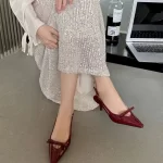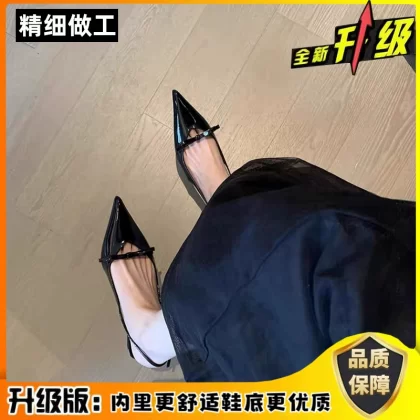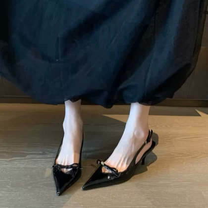 Black elegant spring and summer stiletto heels with skirt and toe-cap sandals