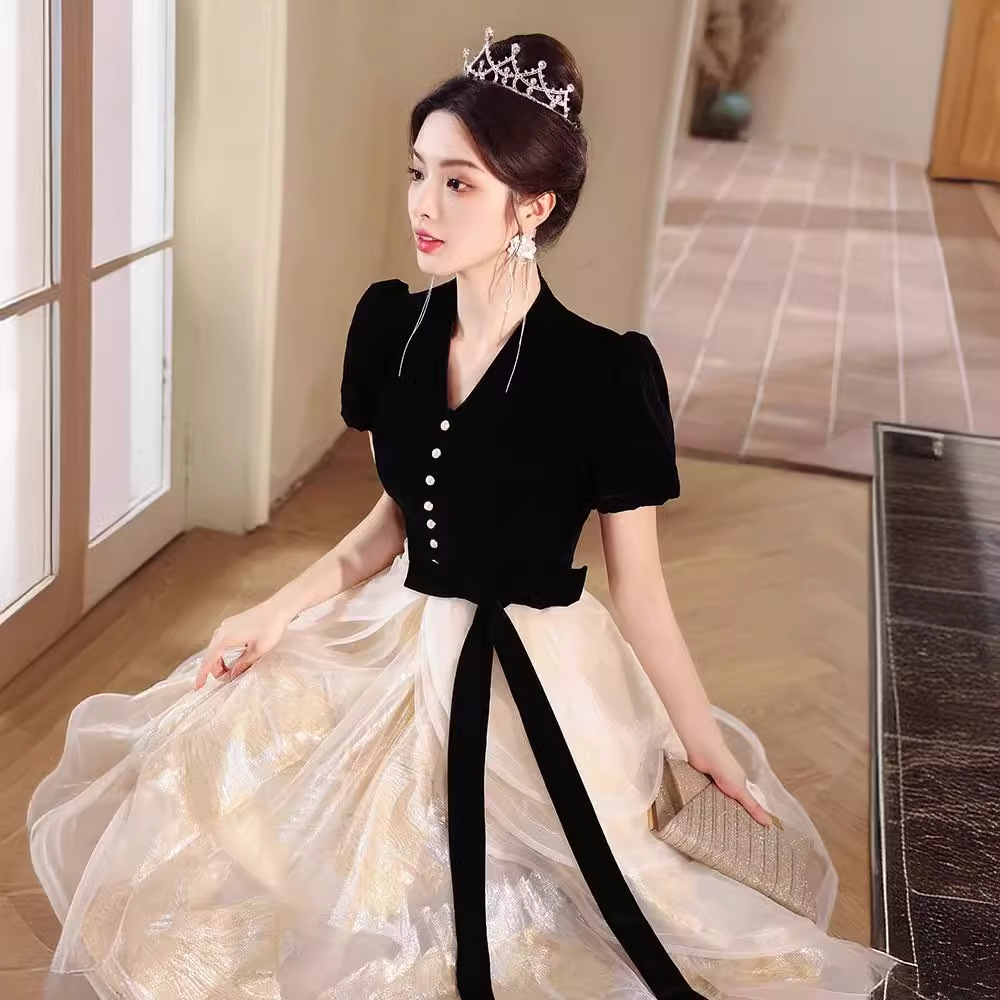 | nameOriginal | Black Evening Dress Skirt Women's 2024 New Banquet High-end Sense Small Adult Ceremony Light Luxury Niche High-end Elegant |