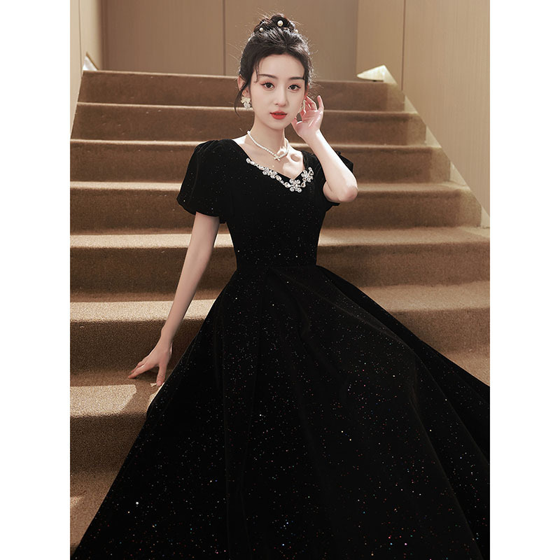 | nameOriginal | Black evening dress women's banquet elegant light luxury niche high-end French Hepburn style art exam adult ceremony high sense |