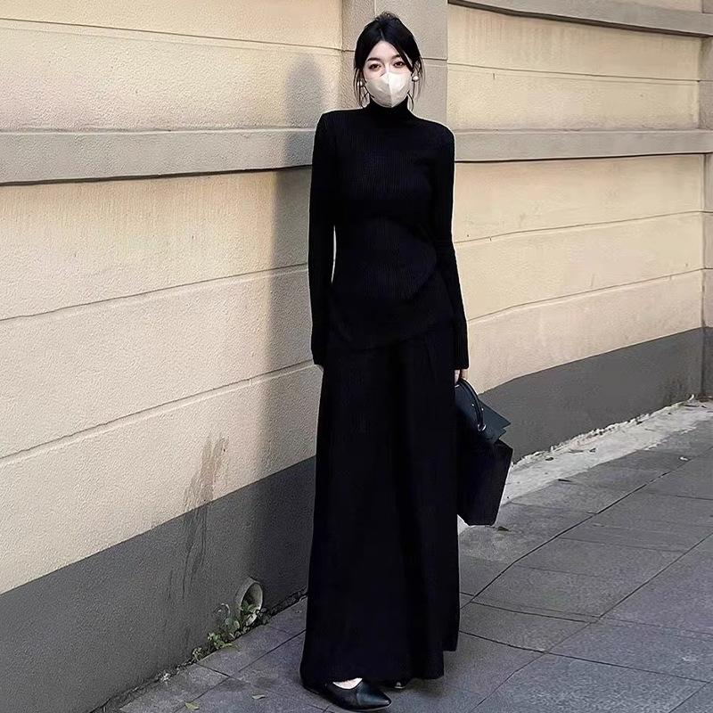 | nameOriginal | Black Fragrant French Style Knitted Interior dress Children's Autumn and Winter 2024 New Style with a Set of Long Dress |