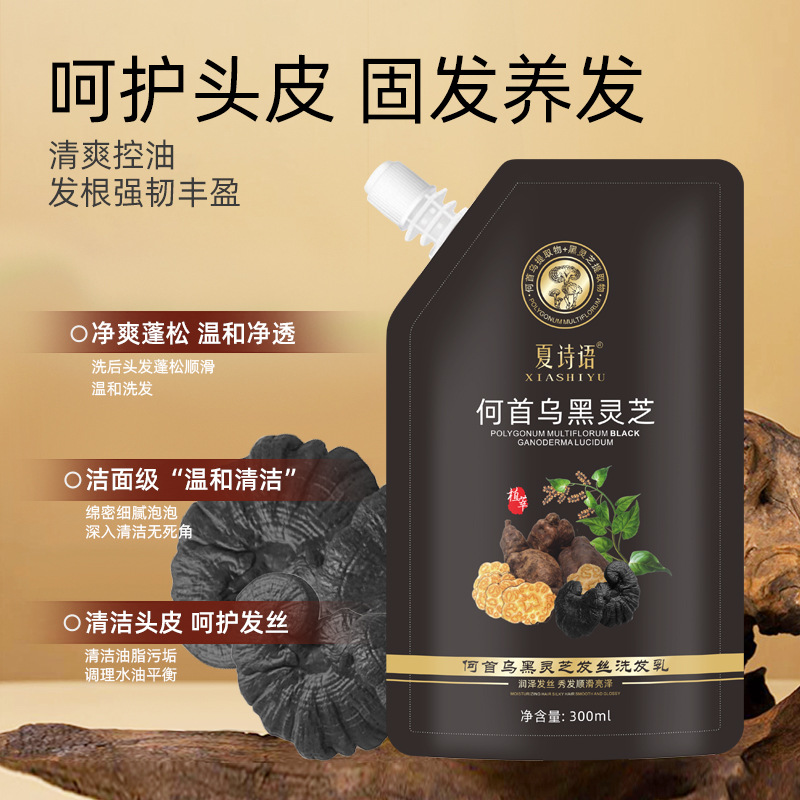| nameOriginal | Black Ganoderma lucidum Polygonum multiflorum Shampoo Hair Care Nourishing Soft Silky Light Fluffy Shampoo a generation of hair |