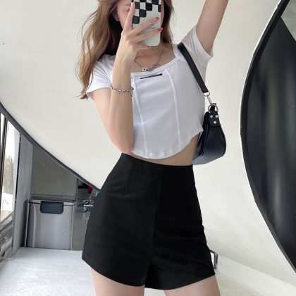 | nameOriginal | Black High Waist Suit Shorts Women's 2024 New Summer Outer Wear A- Word Slimming Elastic Tight Hip Hot Pants |