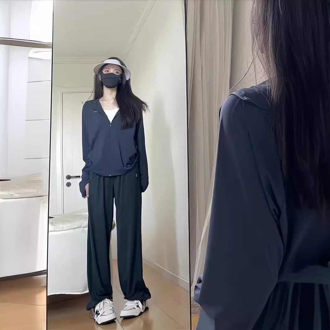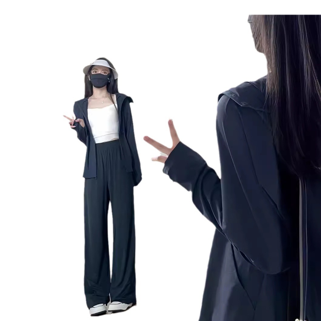 | nameOriginal | Black Ice Silk Sunscreen Casual Sportswear suit Women's Summer Lightweight UV-resistant Breathable Hooded Two-piece Set |