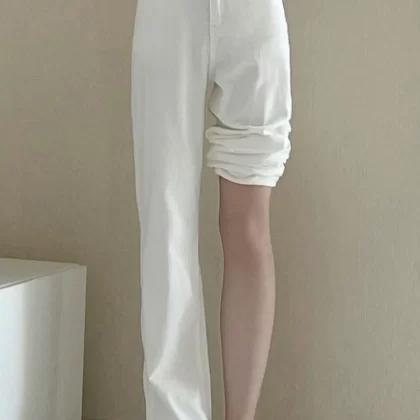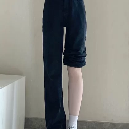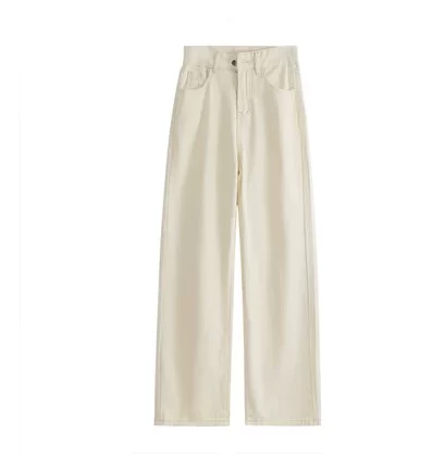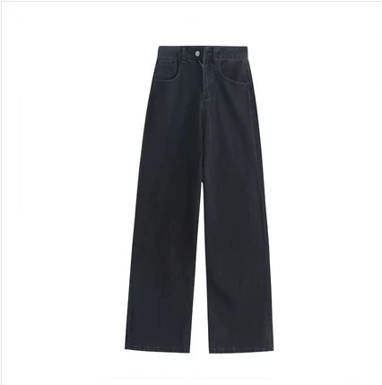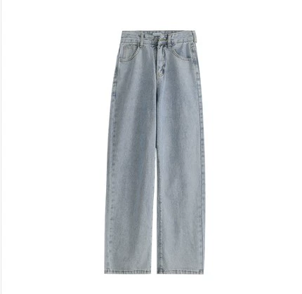 النسخة الكورية المستقيمة من الخصر المرتفع الفضفاضة ، الخصر الرقيق ، جينز أرق