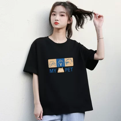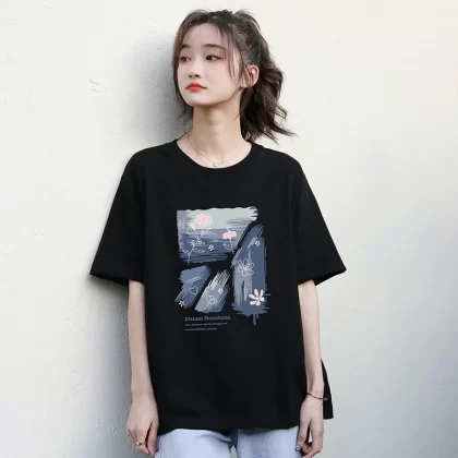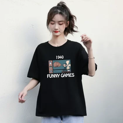 | nameOriginal | Black loose student niche chic short-sleeved T-shirt |