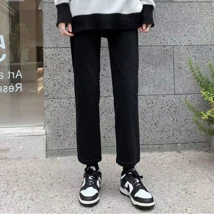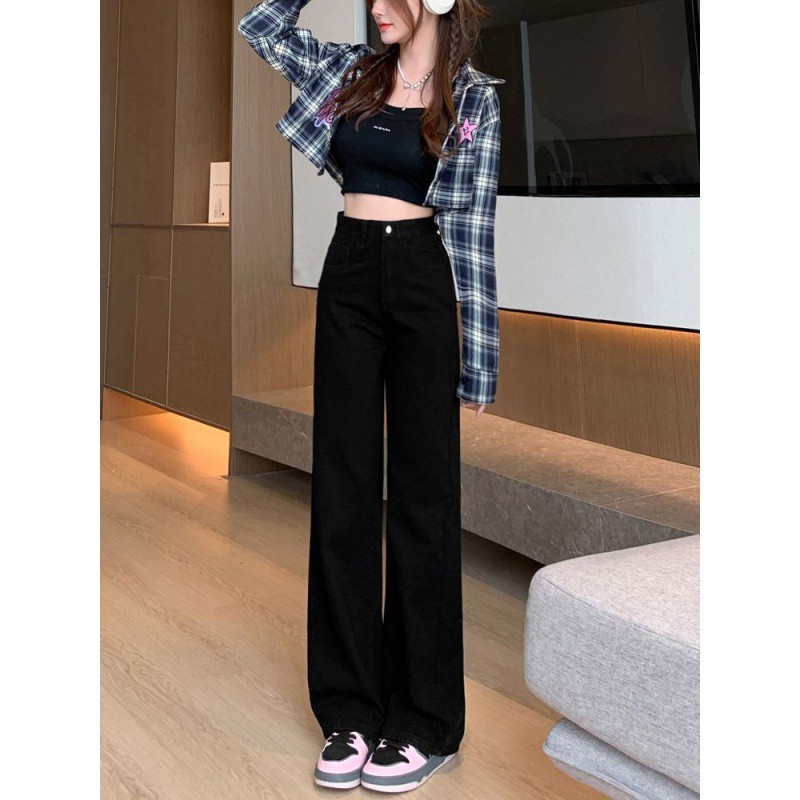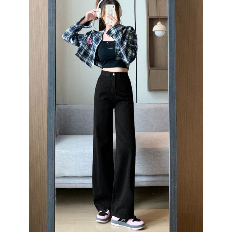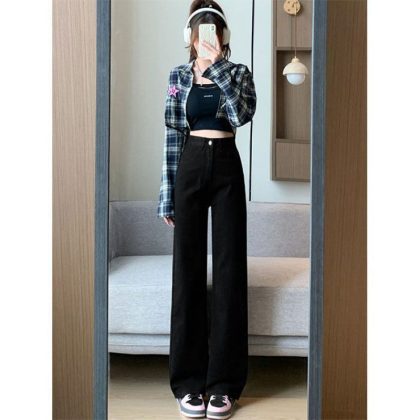 | nameOriginal | Black Loose Wide-leg Jeans Women's Korean-style High-waisted Slim-fit Pear-shaped Short Straight Pants for Students |