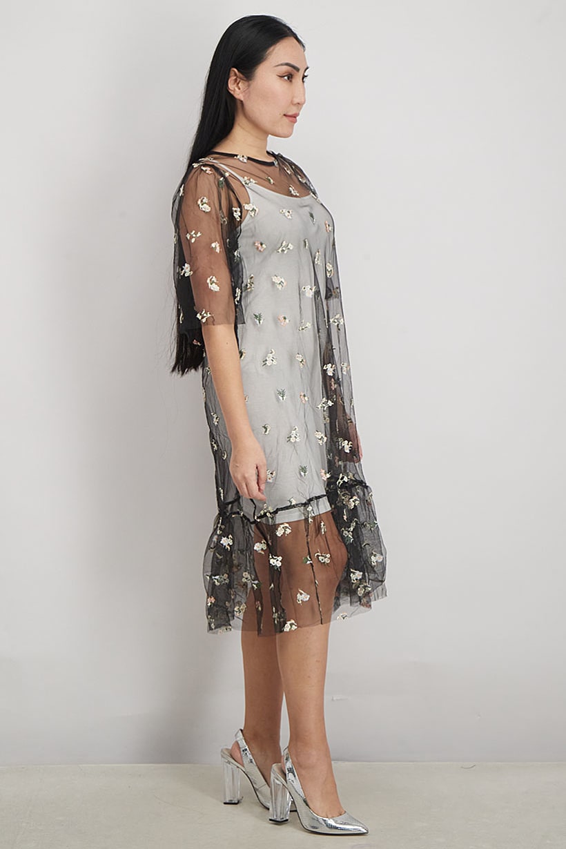 | nameOriginal | Women Floral Embroidered Midi Dress, Black |