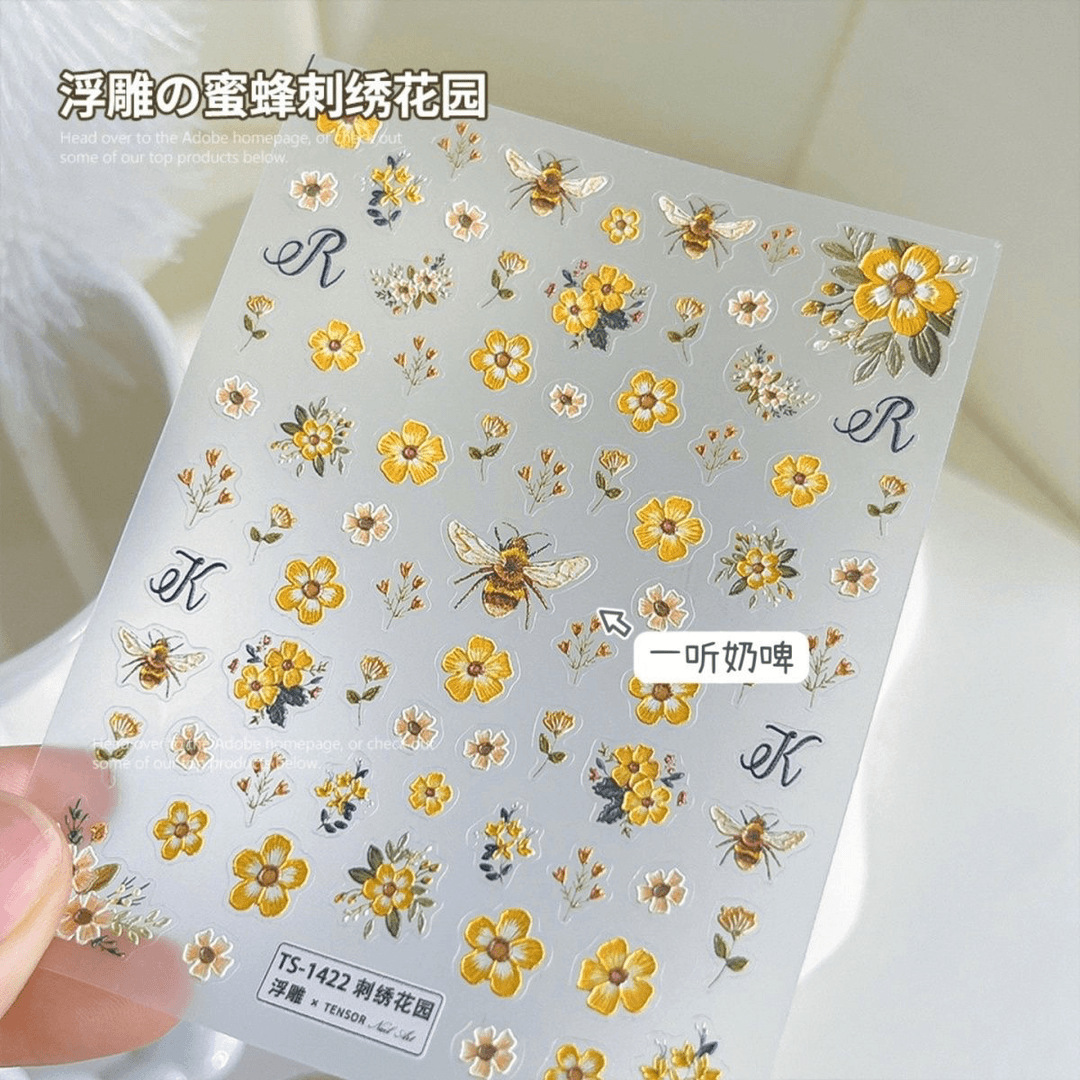 | nameOriginal | Black Personality Art Flower Avatar Bee Nail Decal Leaves Color Flower Nail Decal Cross-border Exclusive |