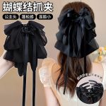 | nameOriginal | Black Ribbon Bow Grab Clip Women's 2024 New High-end Elegant Large High Ponytail Hairpin Clip Headwear |