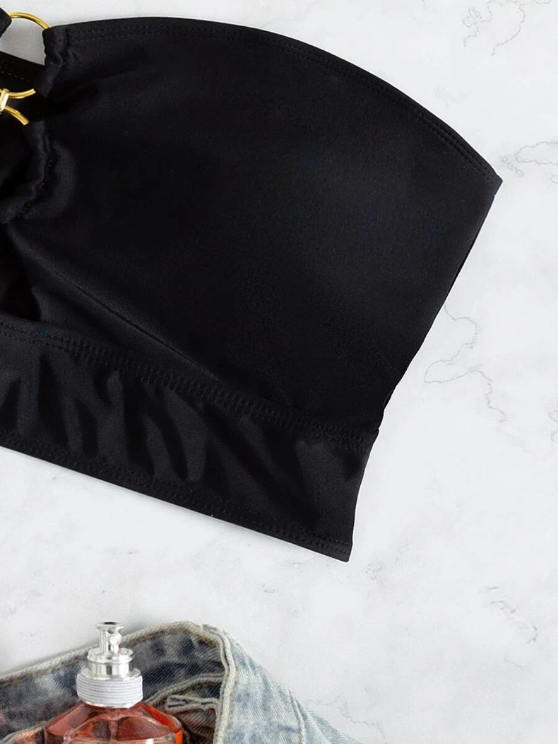 Black Sexy Strapless Swimsuit Top Women's 2024 New European and American Spot Fashion Hollow Beach Swimwear Women
