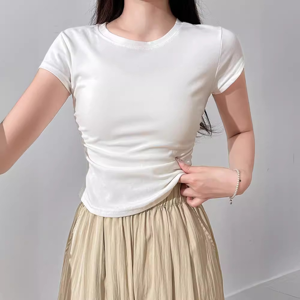 | nameOriginal | Black Short-sleeved T-shirt Women's Summer 2024 New Round Neck Design Sense Slim-fit Slimming Spice Girls Short Shoulder Top |