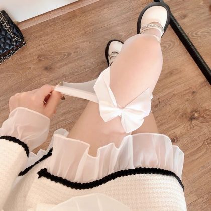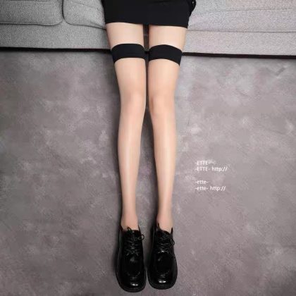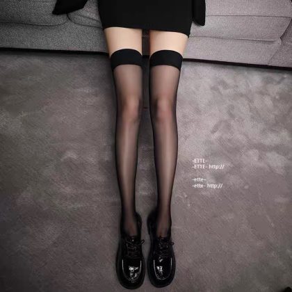 Black Silk Stockings Women's Sexy White Silk High Stockings Black Bow Long Socks Pure Over-the-Knee Thigh Half Stockings