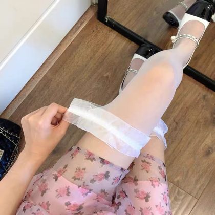 جوارب حريرية سوداء نسائية مثيرة من الحرير الأبيض جوارب عالية بفيونكة سوداء جوارب طويلة نقية فوق الركبة نصف جوارب الفخذ