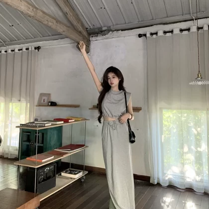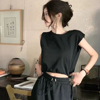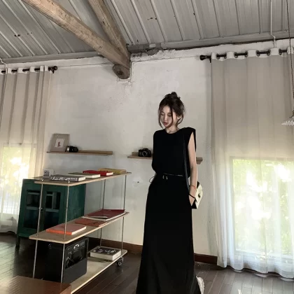 | nameOriginal | Black sleeveless top high waist skirt fashion suit |