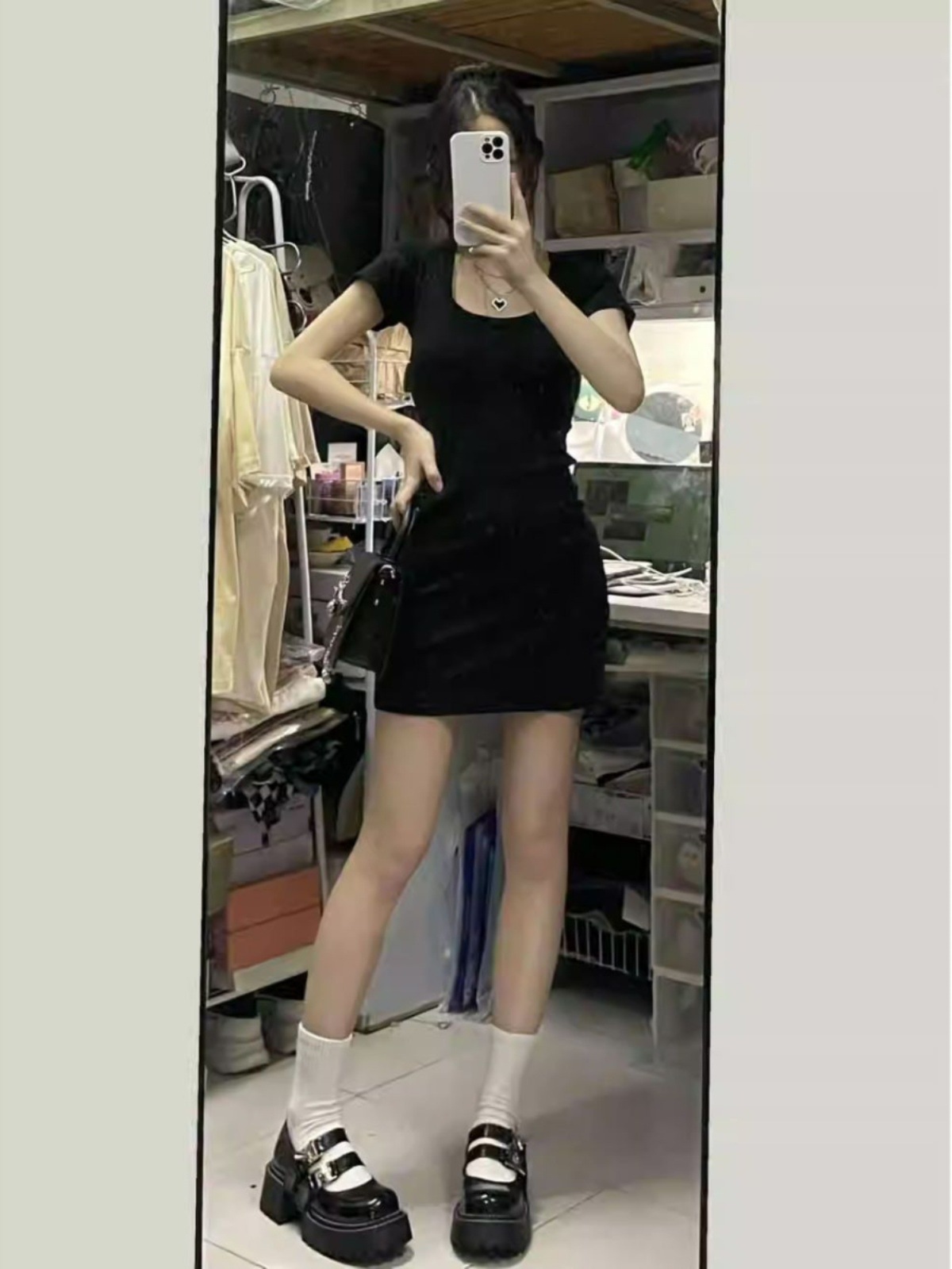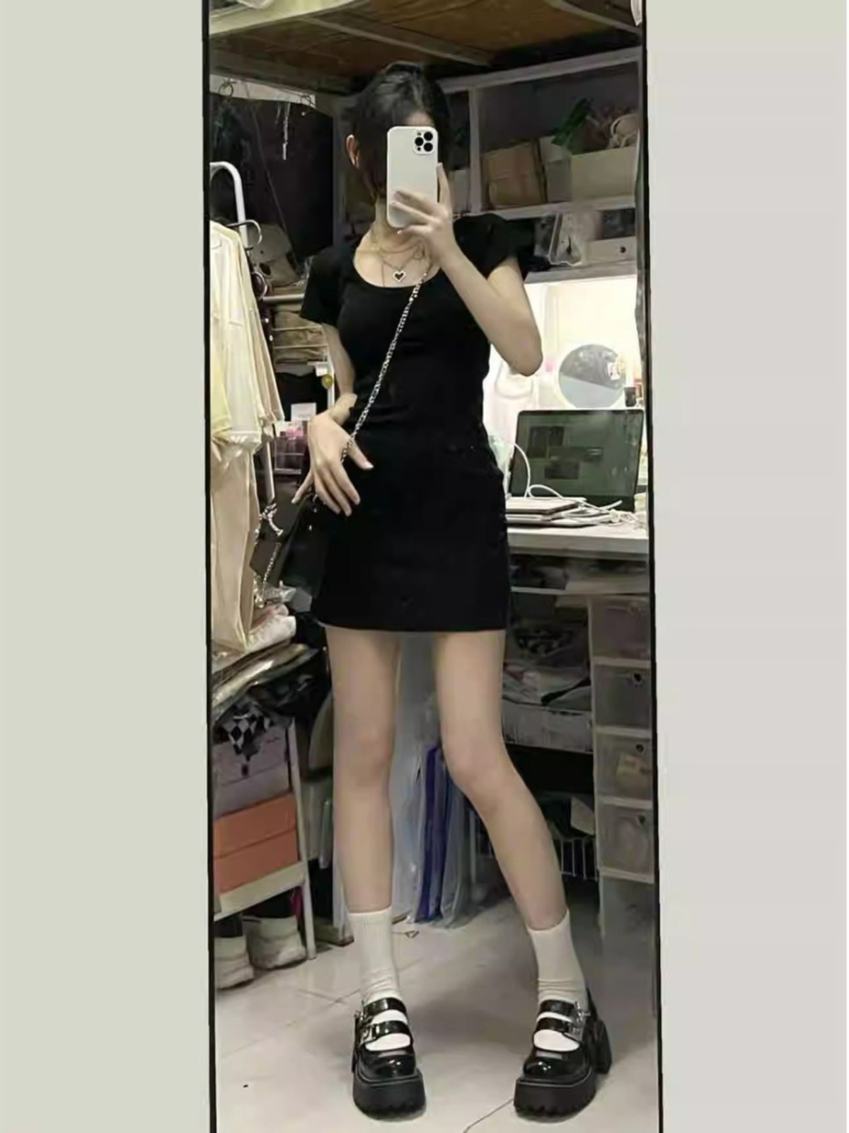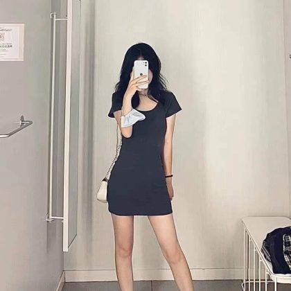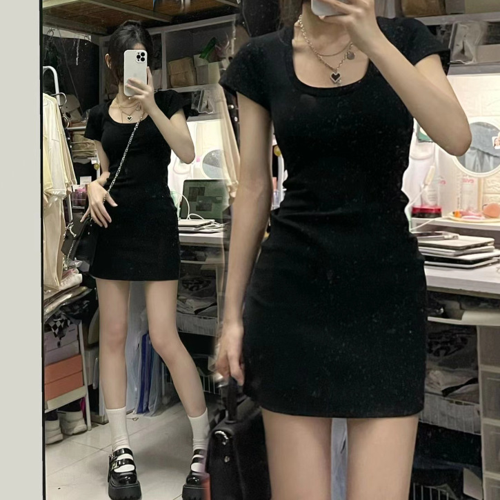 | nameOriginal | Black Slim-fit Hip Bag dress Women's Summer Pure Breath Mom's Skirt Sexy Short-sleeved Waist Slimming T-shirt Skirt |