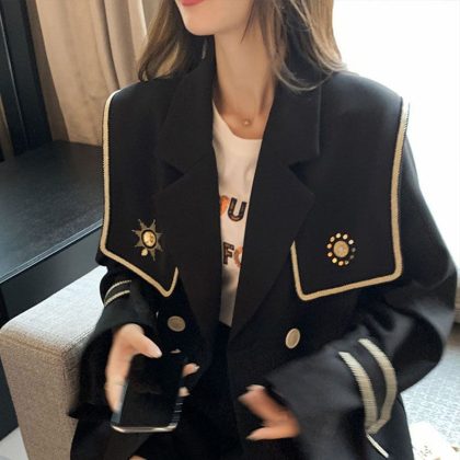 | nameOriginal | Black small suit for women 2023 autumn casual thin draping loose slimming elegant Korean style suit top fashion |