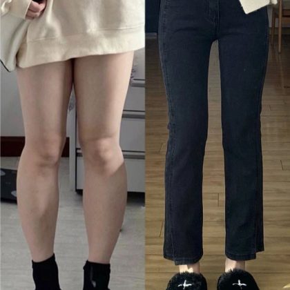 | nameOriginal | Black Split Straight Leg Jeans Women's Early Spring plus size chubby girl High Waist Elastic Slim Slim Covering Cropped Cigarette Pants |