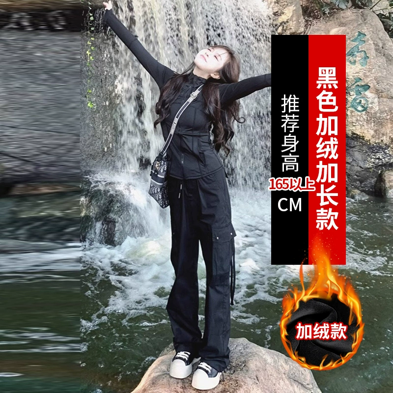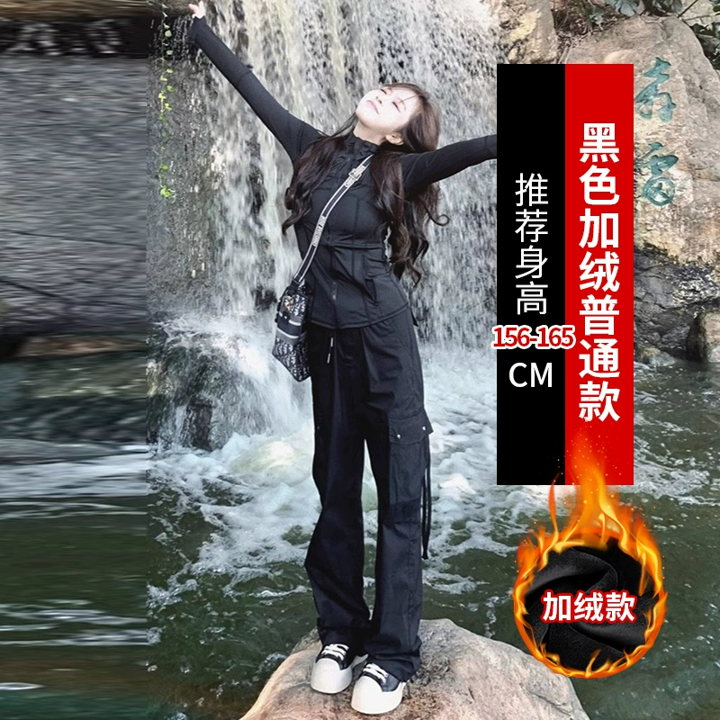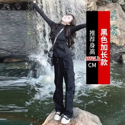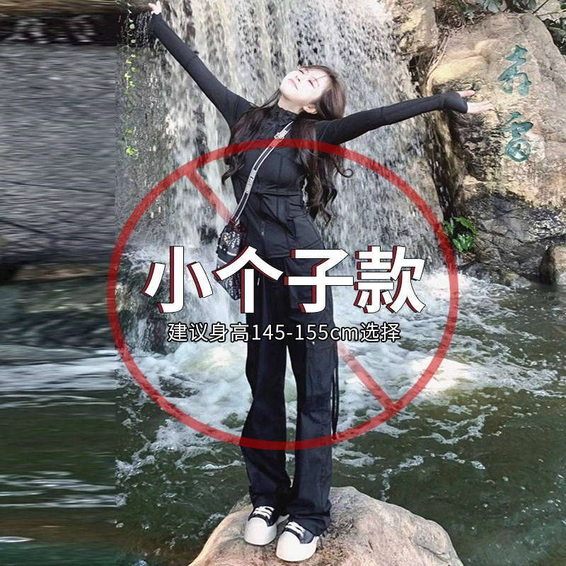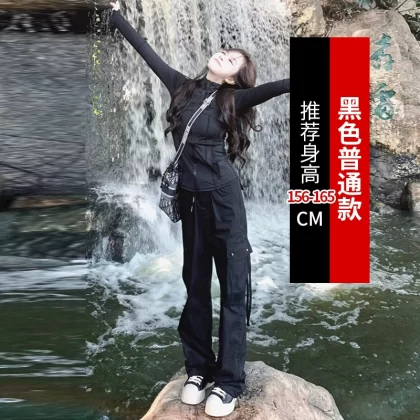 Black spring and autumn women's American retro assault overalls
