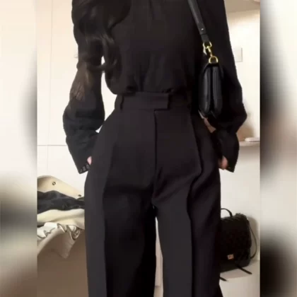 | nameOriginal | Black spring and summer high-waisted loose niche floor-length suit pants |