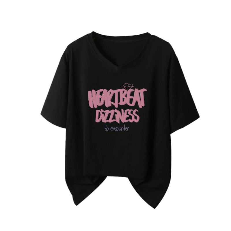 | nameOriginal | Black v-neck t-shirt women's summer large size loose top short sleeves |
