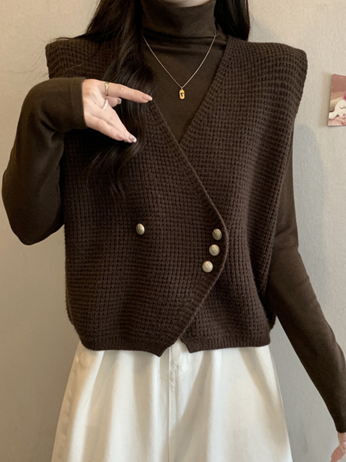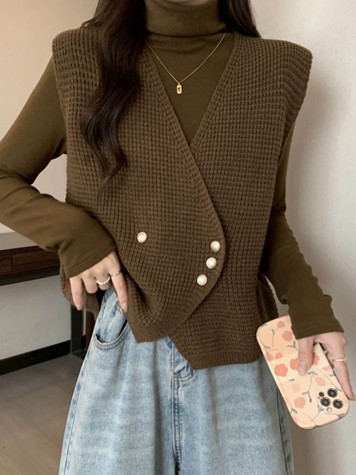 | nameOriginal | Black waffle knitted vest women's autumn and winter plus size chubby girl slimming stacked wear matching sleeveless sweater vest top |