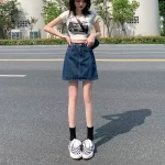تنورة الدنيم الصيفية للسيدات السوداء