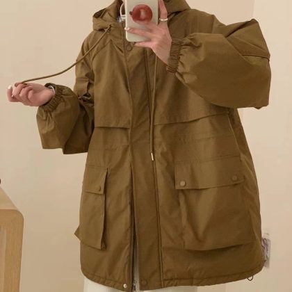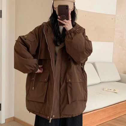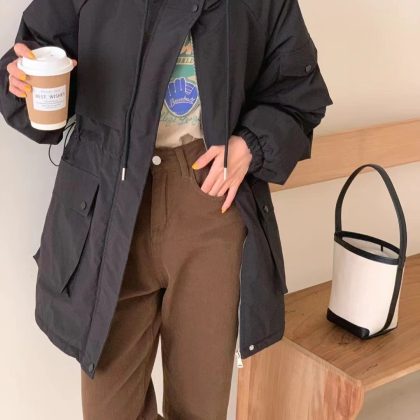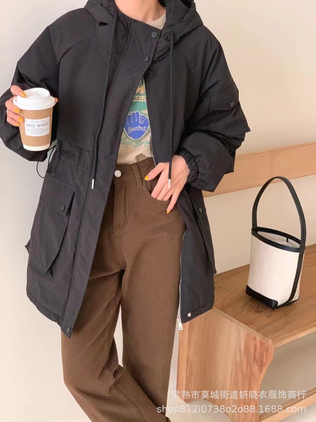 ملابس عمل سوداء مبطنة بالقطن ملابس الخريف والشتاء 2023 طالب جديد فضفاض غير رسمي مبطن سميك الخصر سترة مبطنة بالقطن معطف الموضة