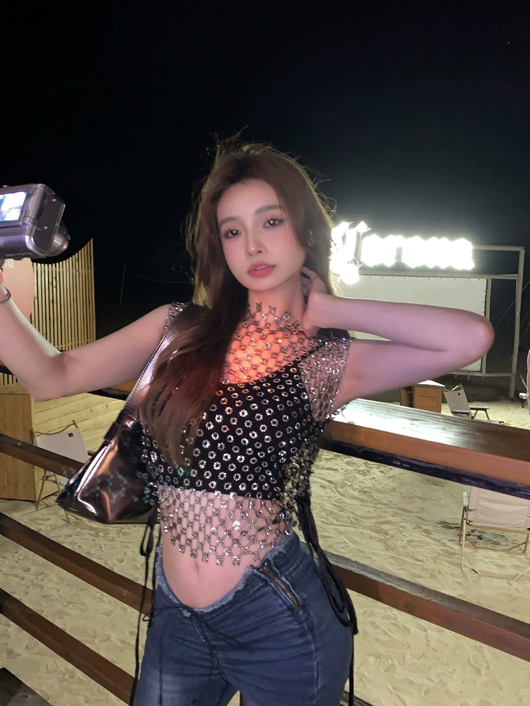 blackpink's same style lisa diamond mesh sleeveless vest sexy jazz stage performance sparkling diamond top