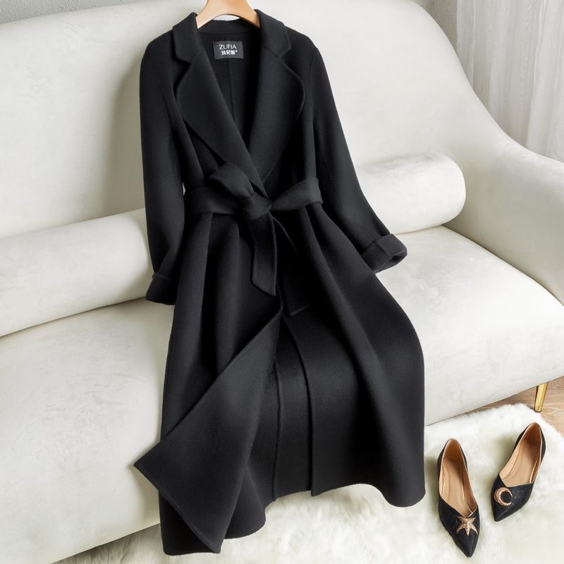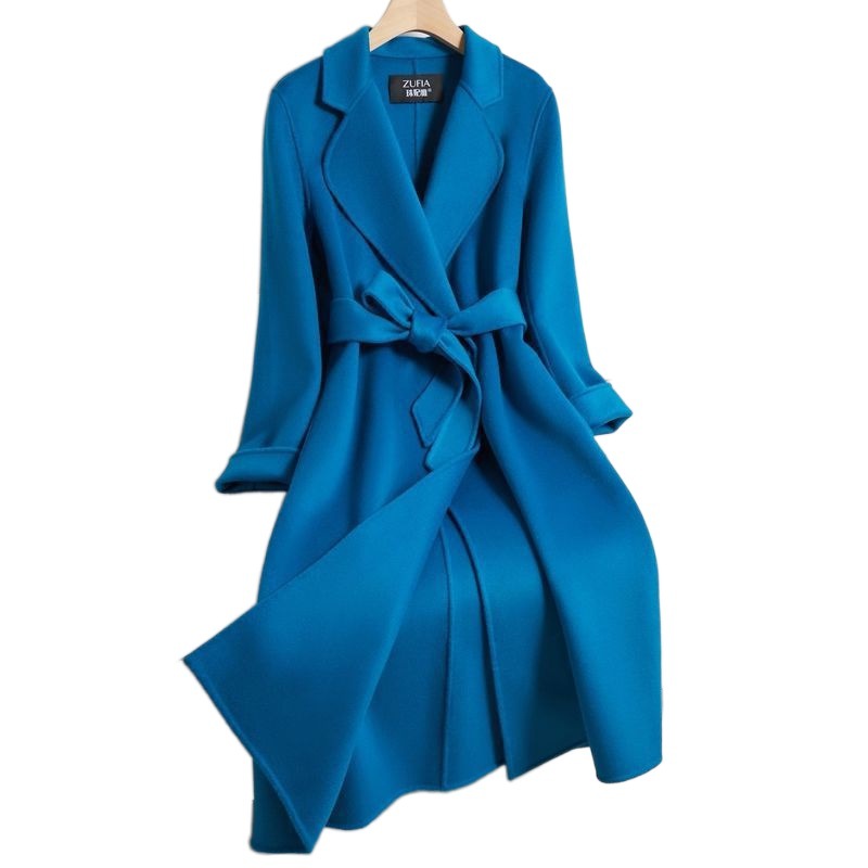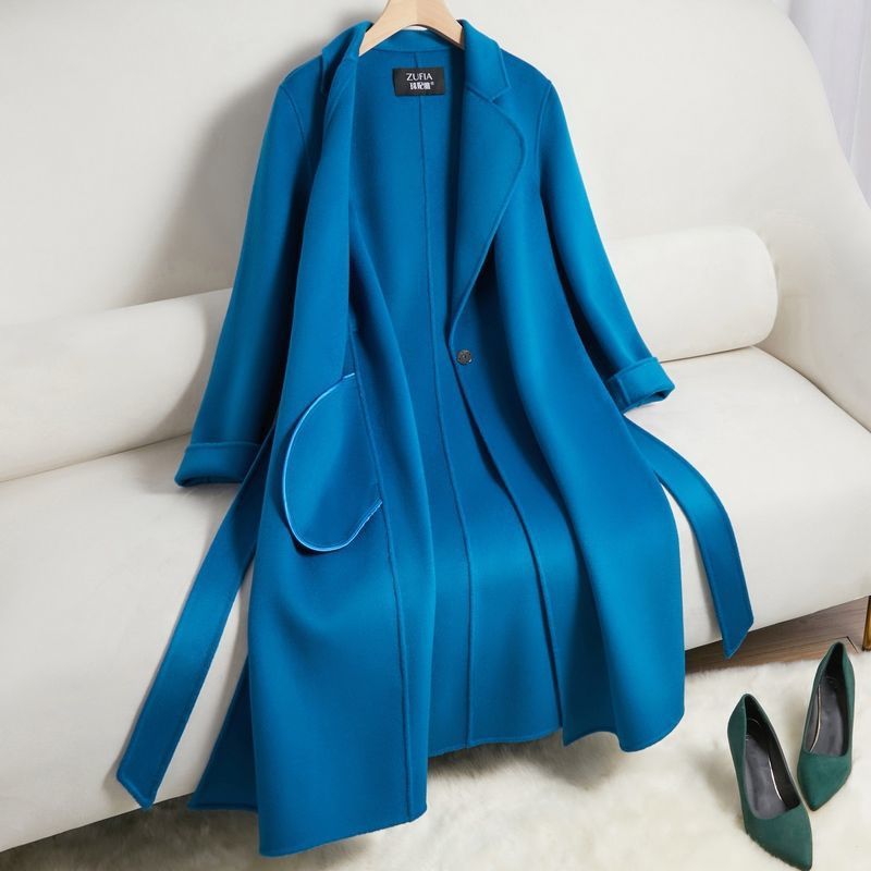 Blue double-sided cashmere overcoat women's long over-the-knee new suit collar slim slimming wool double-sided woolen coat