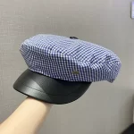 | nameOriginal | Blue plaid beret women's British retro girly college style sailor hat spring and summer leather brim painter's hat |