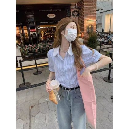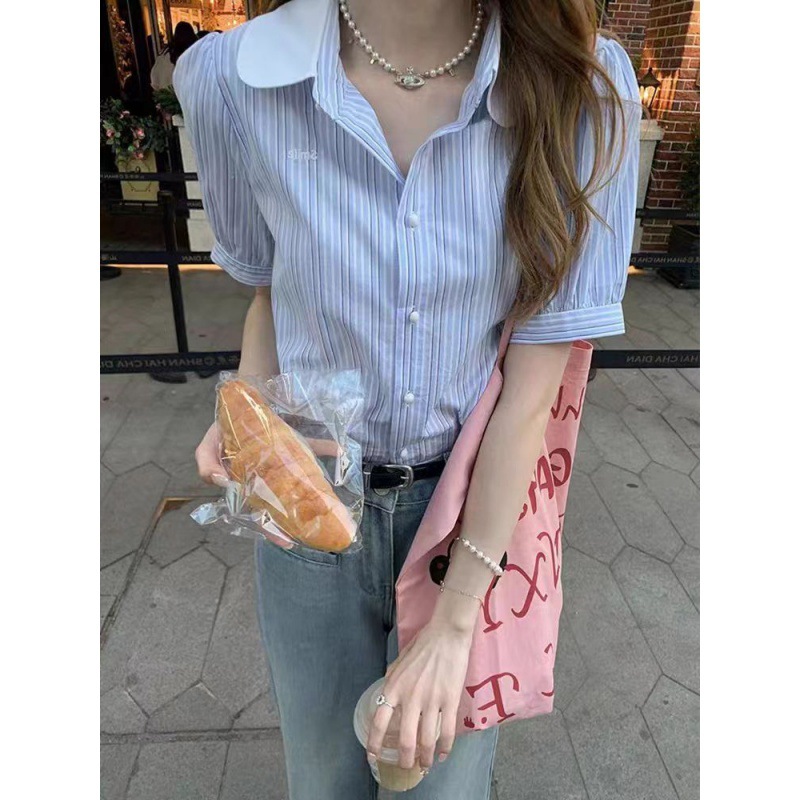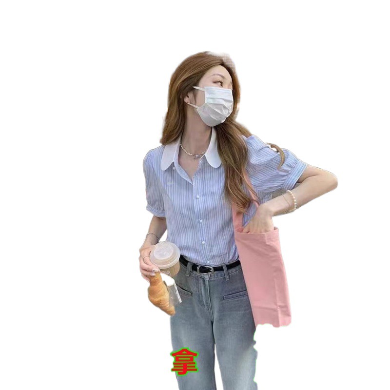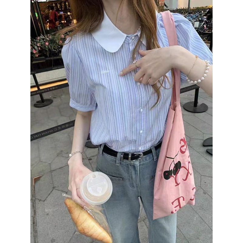 | nameOriginal | Blue Striped Doll Collar Short Sleeve Lining Women's Summer Design Sense Niche Shirt Puff Sleeve Top Summer |