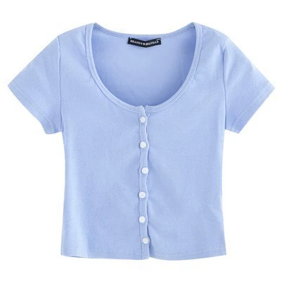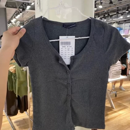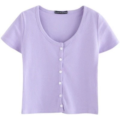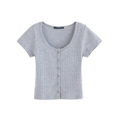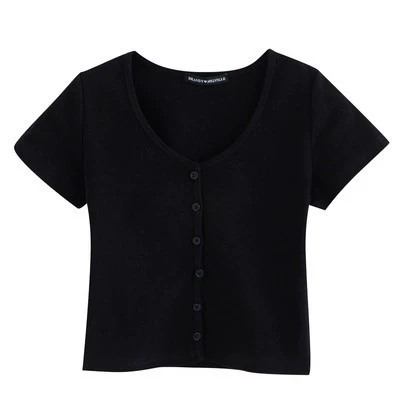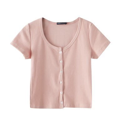 BM official website single-breasted solid color T-shirt BM summer new round neck casual versatile short-sleeved tops women's zellytop
