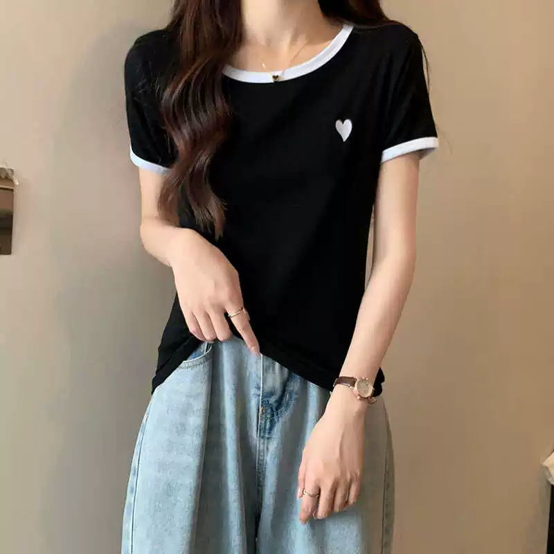 | nameOriginal | bm pink summer embroidered slim top short-sleeved t-shirt |