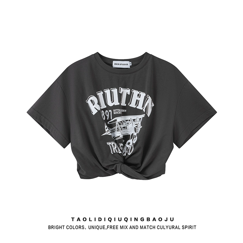 bm shirred right shoulder summer slim top short-sleeved T-shirt