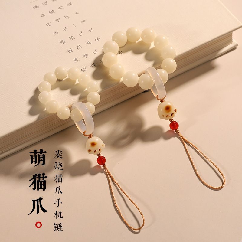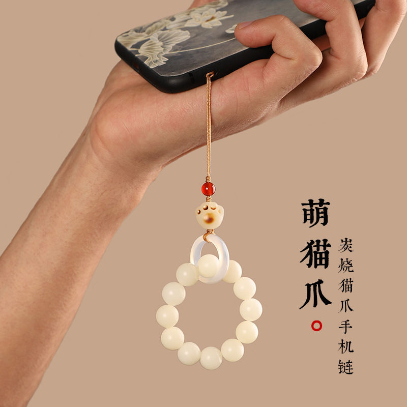 | nameOriginal | Bodhi Pendant Charcoal Burned Cat's Claw Mobile Phone Lanyard White Hand Twirling Plate Men's and Women's Key Chain Anti-lost Hanging Ornaments |