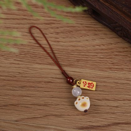 | nameOriginal | Bodhi root charcoal burning cat claw cat mobile phone chain lanyard pendant mobile phone case keychain cute press placket pendant female |