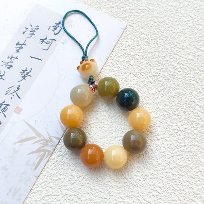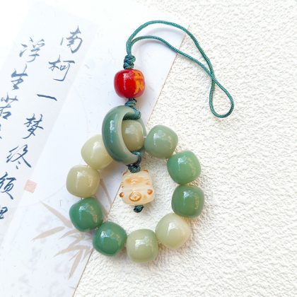 Bodhi root mobile phone rope natural white jade Bodhi pendant U disk pendant handmade pendant car keychain