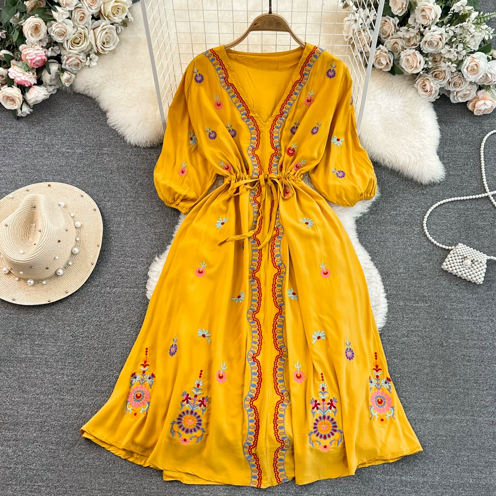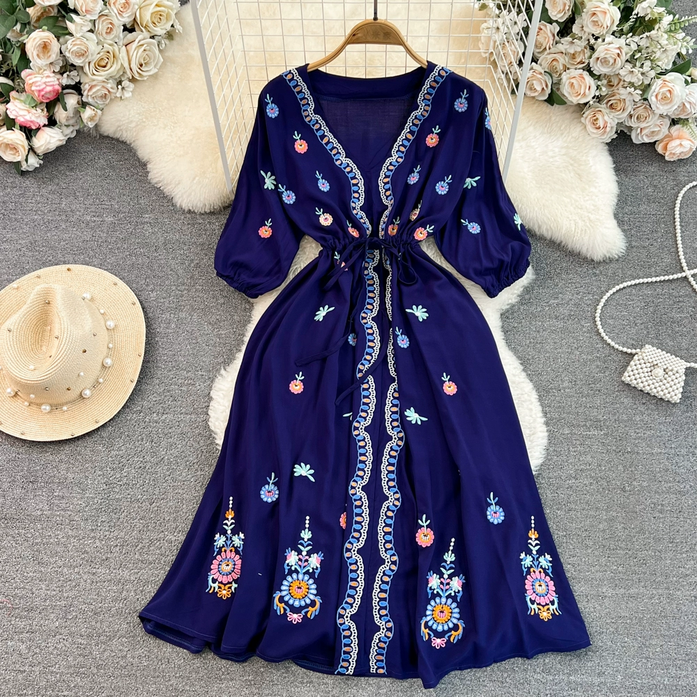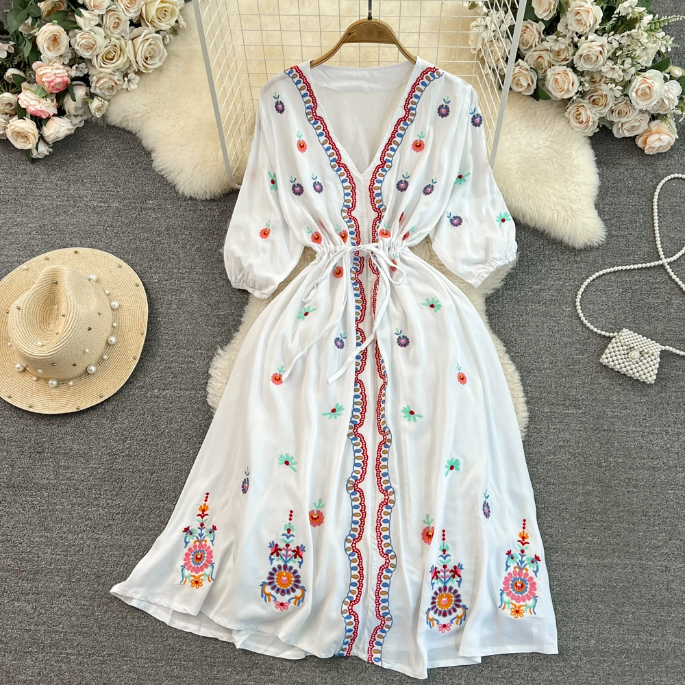| nameOriginal | Bohemian ethnic style V-neck A-line beach skirt with embroidery |