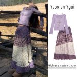 | nameOriginal | Bohemian Holiday Style Stitching High Waist Skirt suit Women's Spring Neck Long-sleeved T-shirt Top Slimming A- line Skirt |